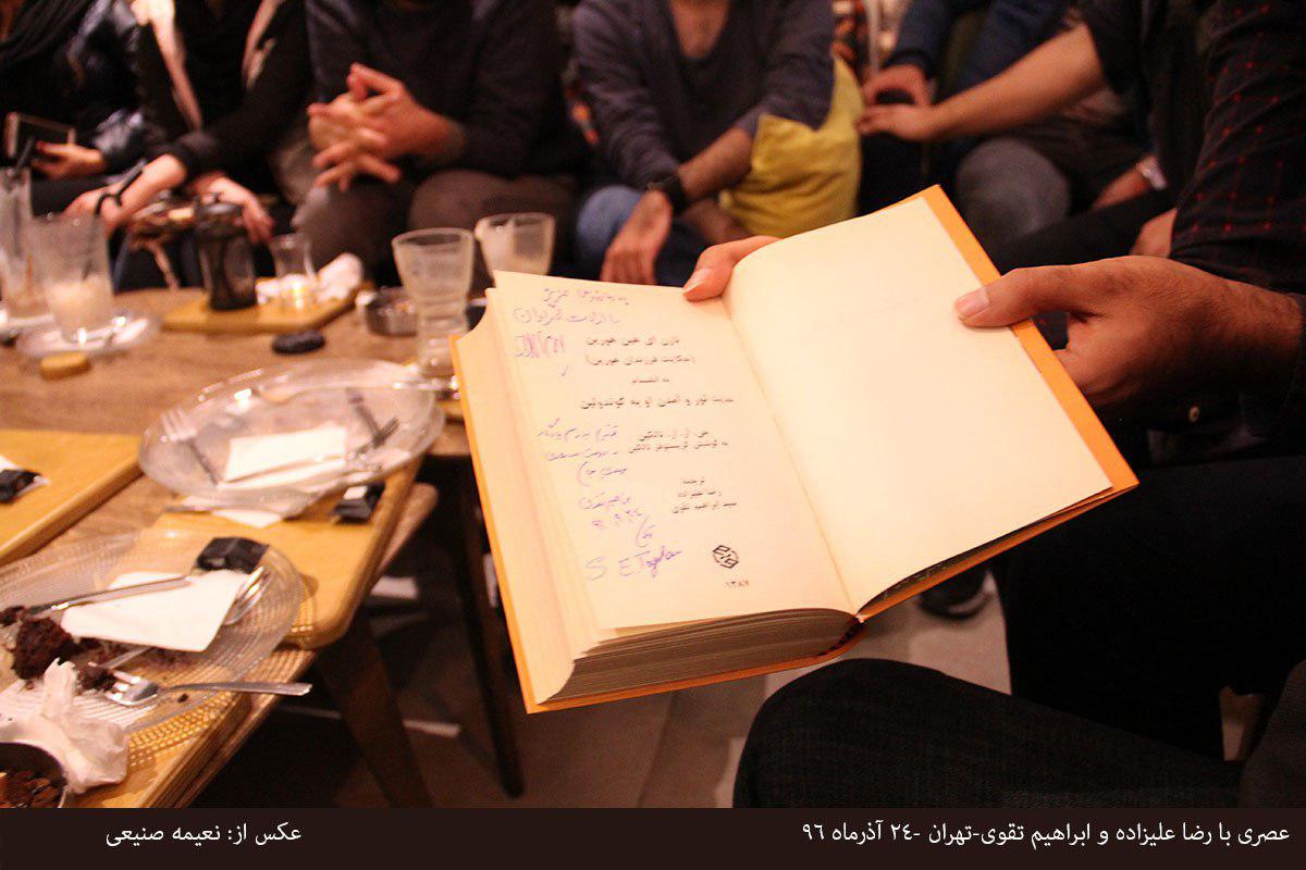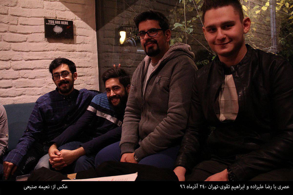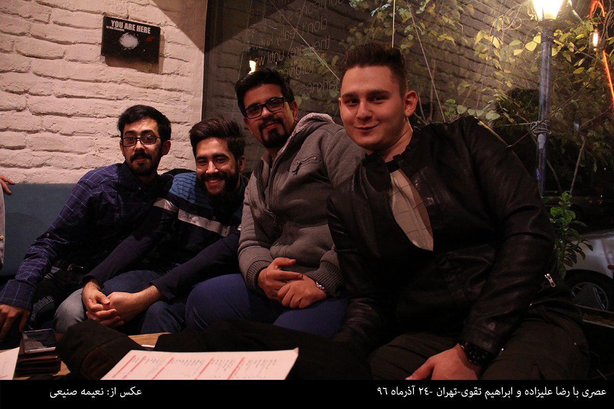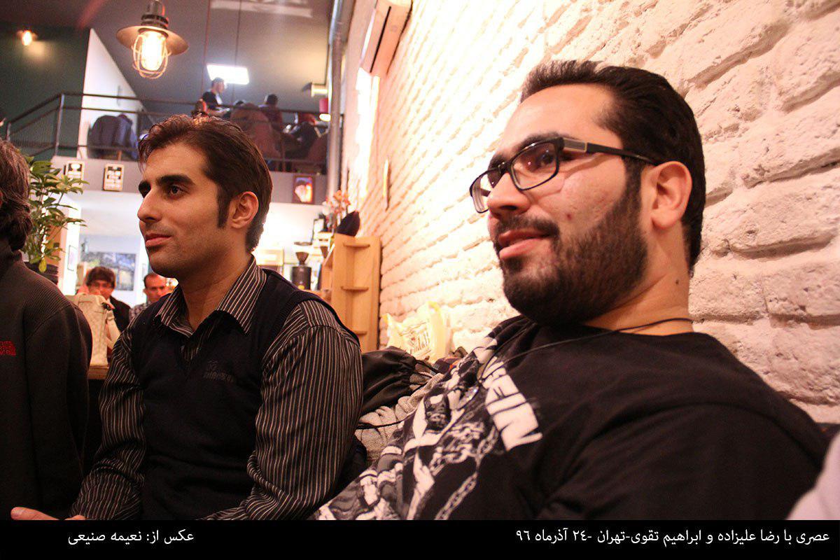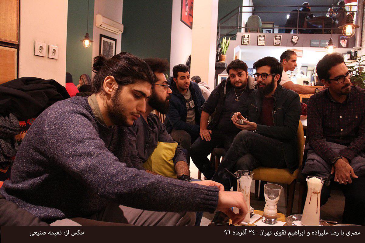 عصری با «رضا علیزاده» و «سید ابراهیم تقوی» در کافه زَهیر تهران، نام مراسمی بود که جمعه گذشته مورخ ۲۴ آذرماه ‌۱۳۹۶ با حضور جمعی از کاربران آردا و در فضایی صمیمی برگزار شد.