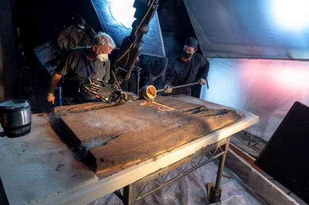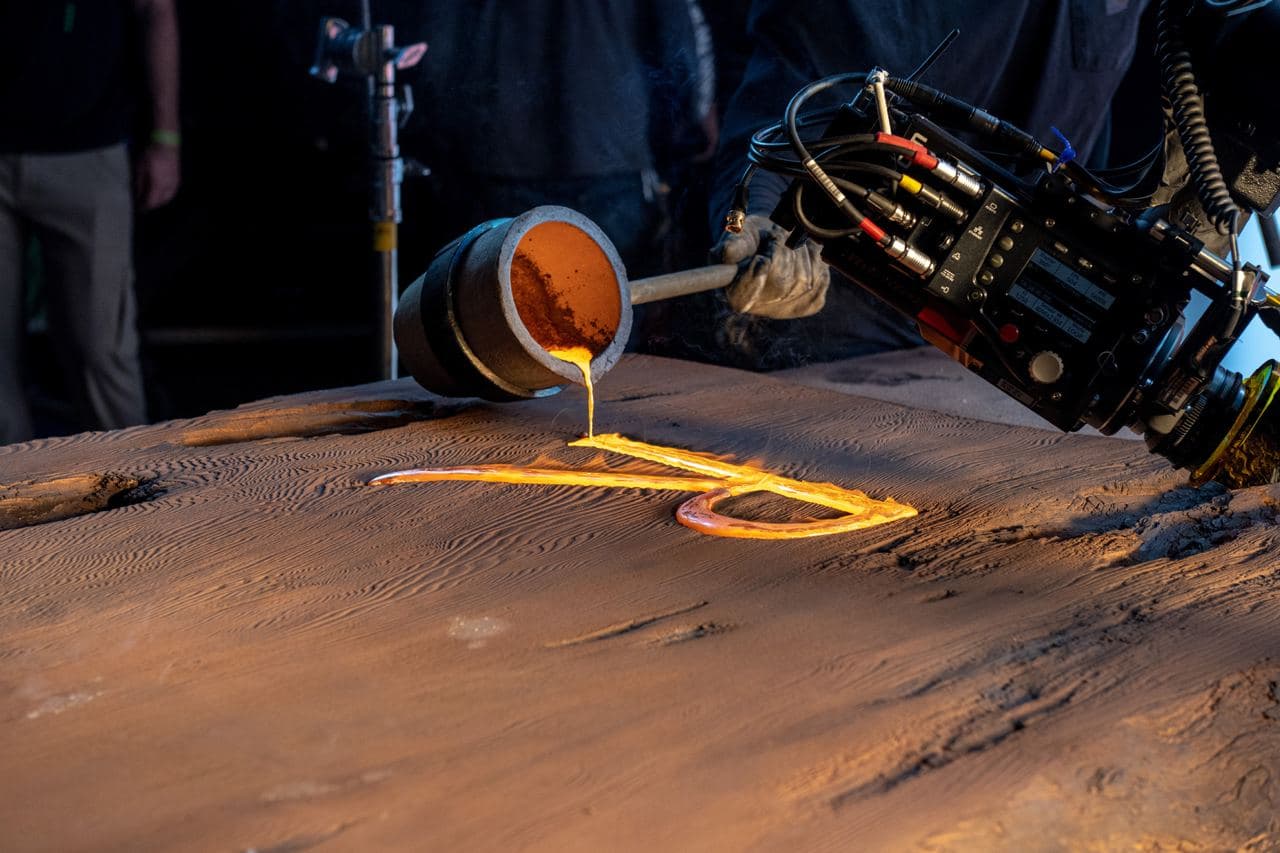 وبسایت IGN در مطلبی اختصاصی صحنههایی از پشت صحنه ساخت عنوان سریال The Lord of The Rings: The Rings of Power را منتشر کرده، گفته است که آمازون در اواخر سال ۲۰۲۱ از ترکیب چوب، فلز گداخته و آب بسیار سرد برای ساخت این تیزر استفاده کرده و تصاویر را با دوربین Phantom Flex 4K و نرخ ۵۰۰۰ فریم بر ثانیه ضبط است.